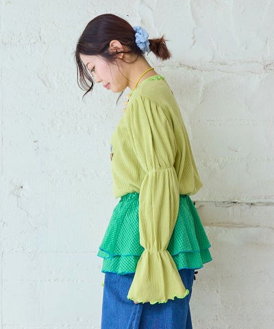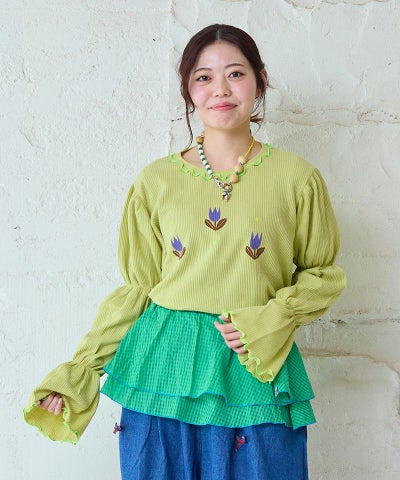スモッキングスリーブワッフルカットソー / 大人サイズ