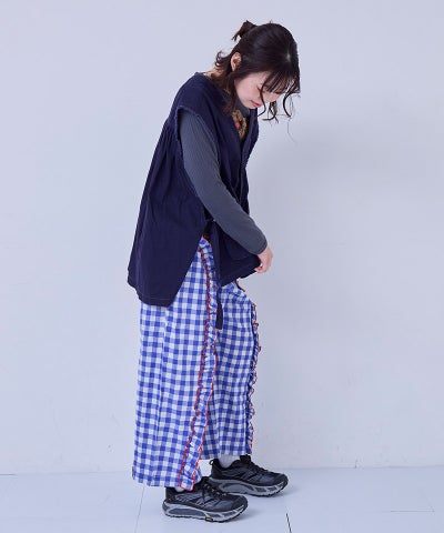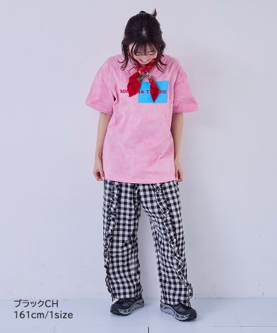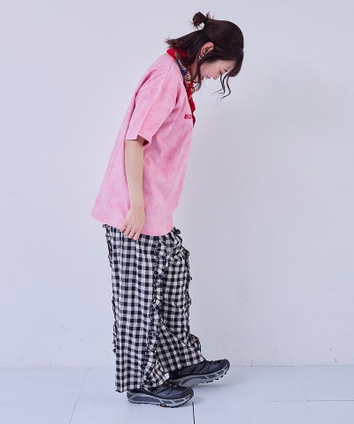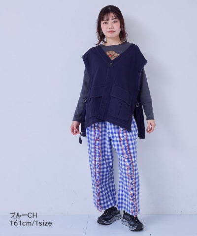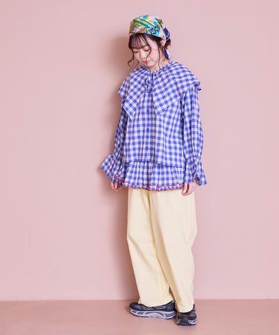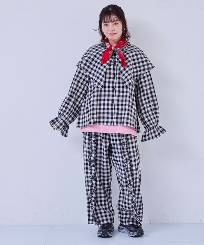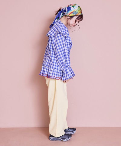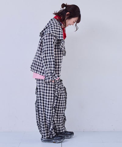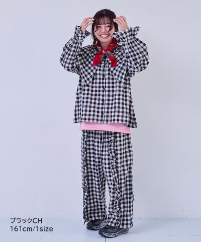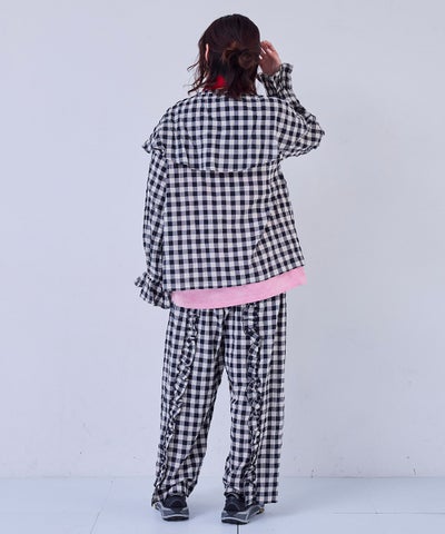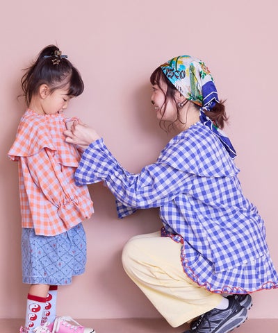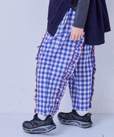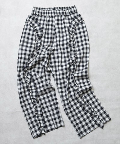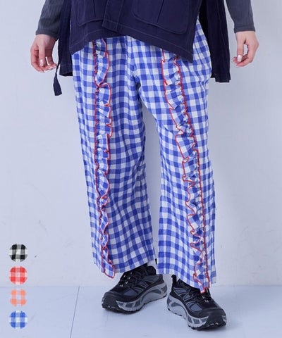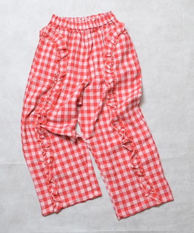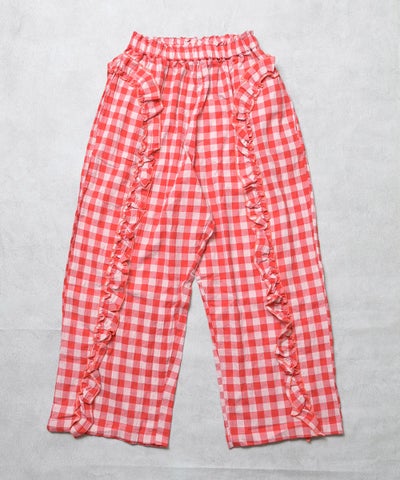 【親子お揃い】ギンガムラウンドフリルロングパンツ/大人サイズ