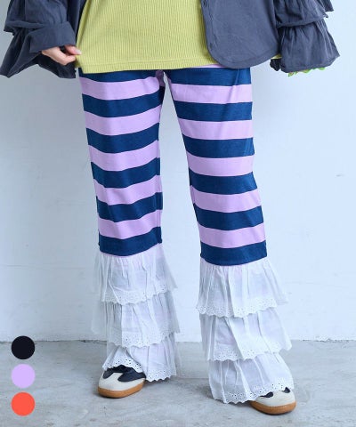 レースフリルティアードボーダーパンツ / 大人サイズ