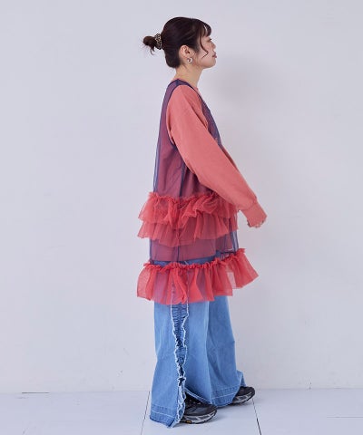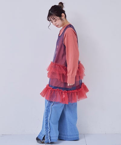 【親子お揃い】チュールフリルサスペンダー/大人サイズ