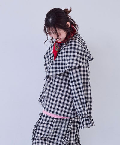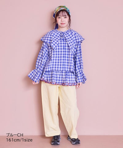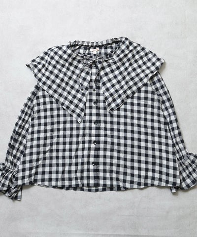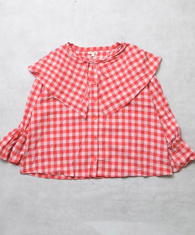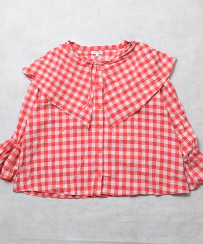 【親子お揃い】ギンガムビッグカラーブラウス/大人サイズ