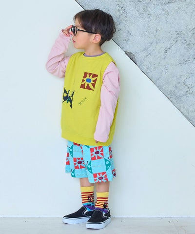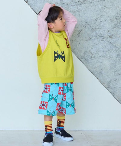 総柄ミニ裏毛ワイドタックハーフパンツ