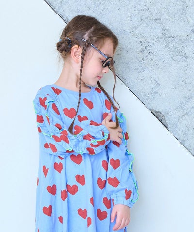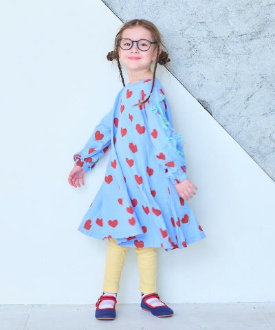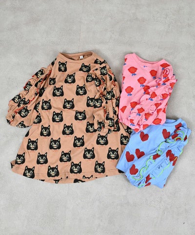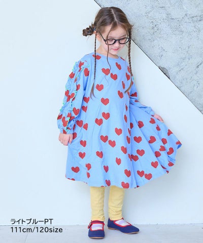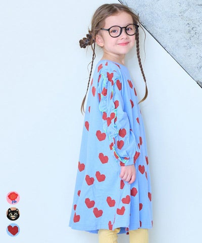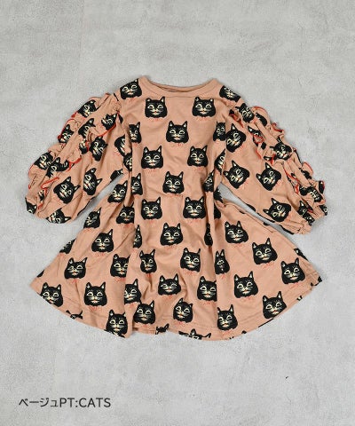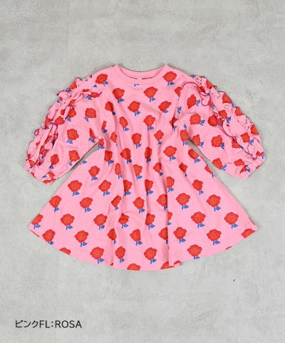 総柄フリルスリーブワンピース