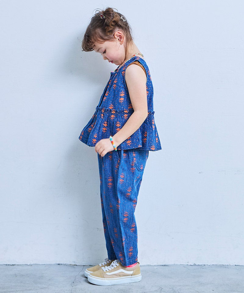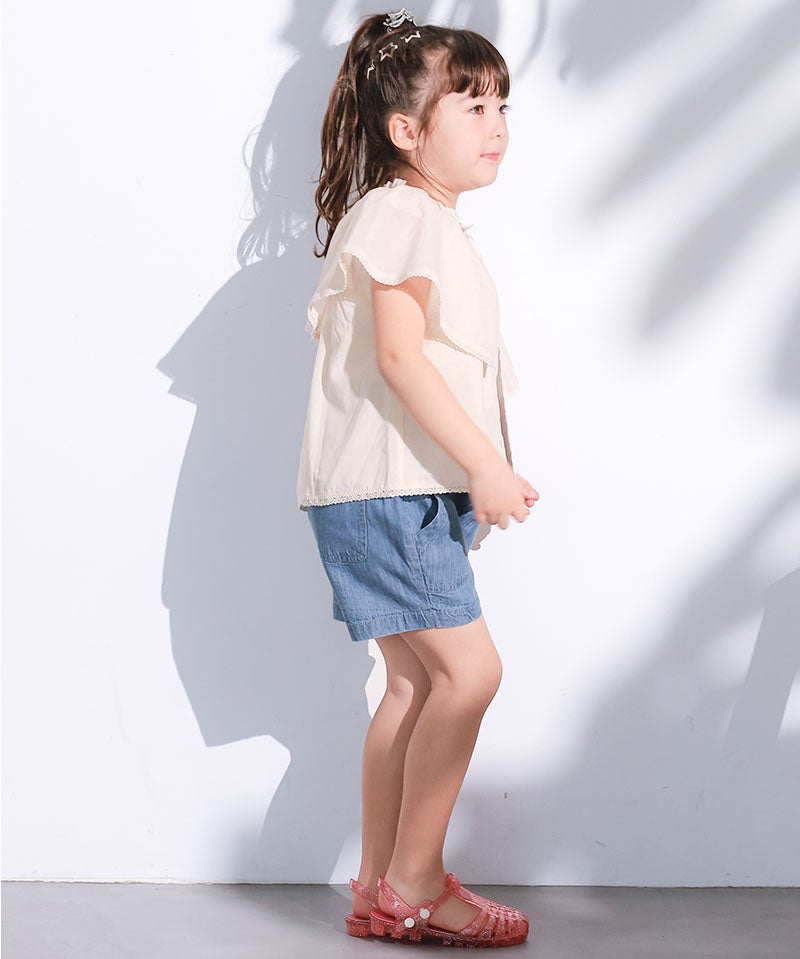 【親子お揃い】ローンビッグカラーノースリーブブラウス
