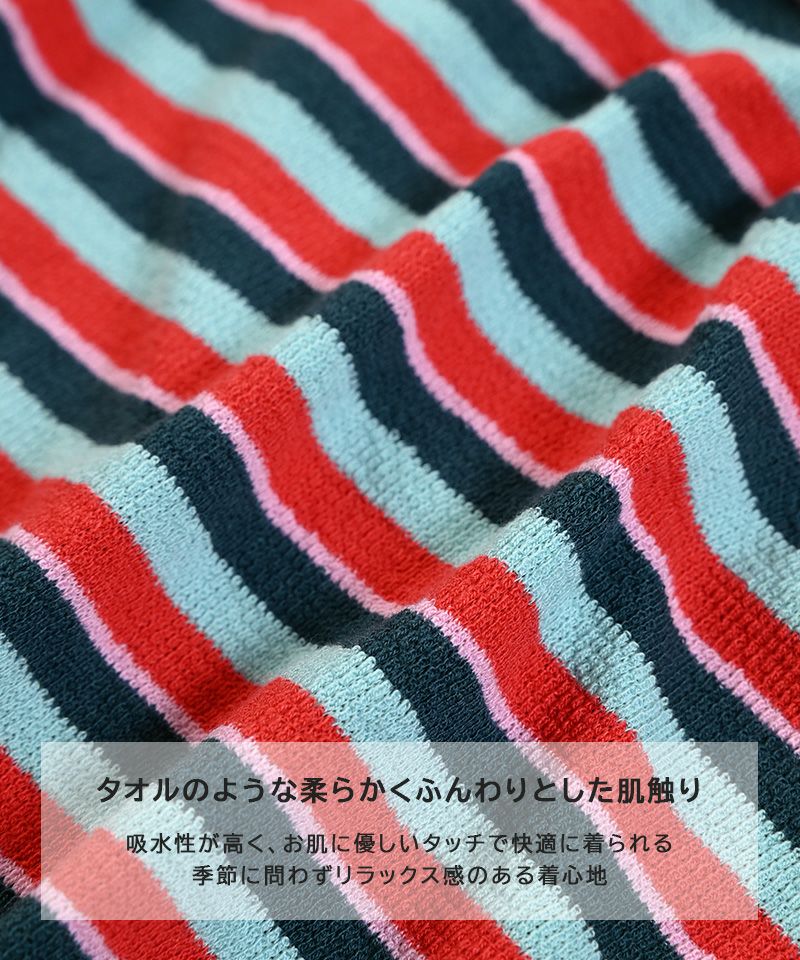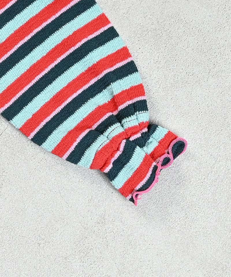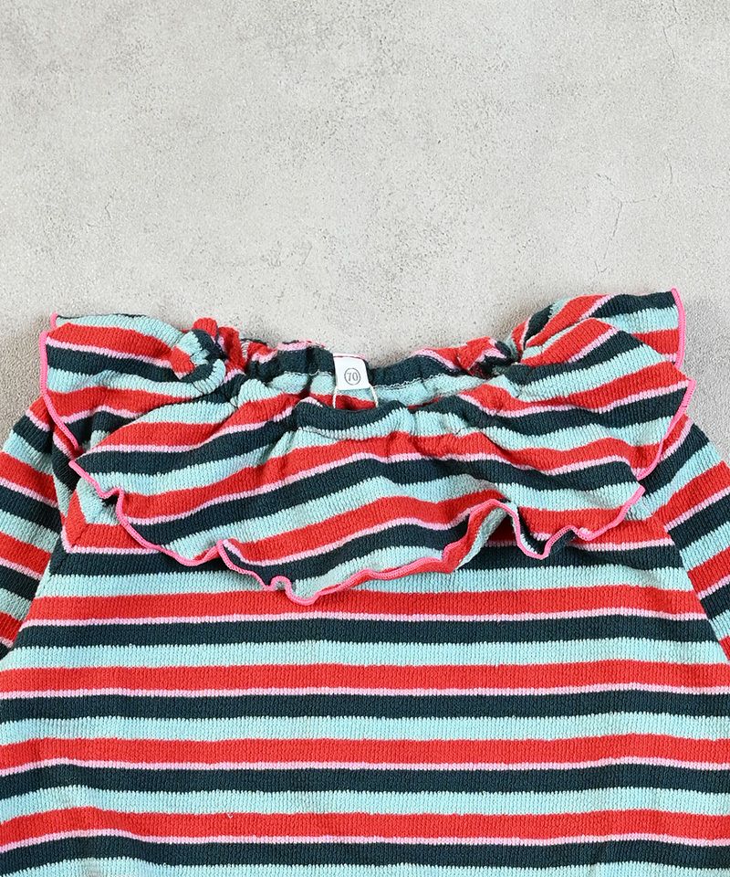 パイルボーダーフリルカラーボディシャツ