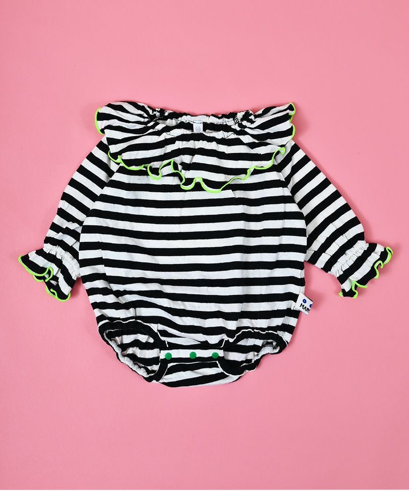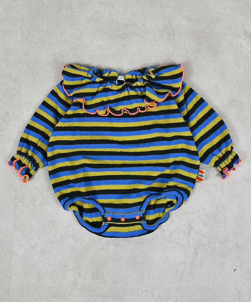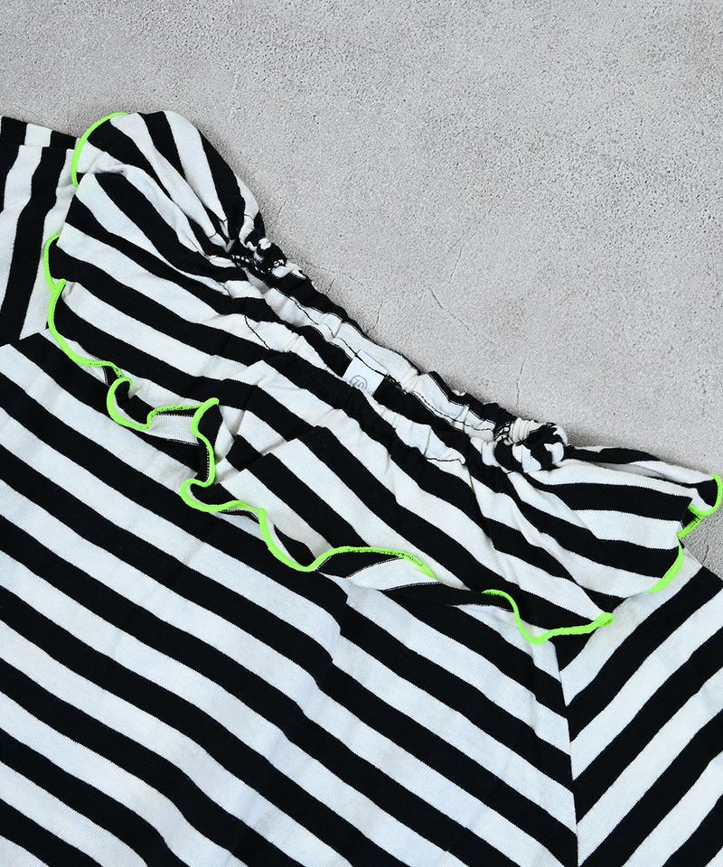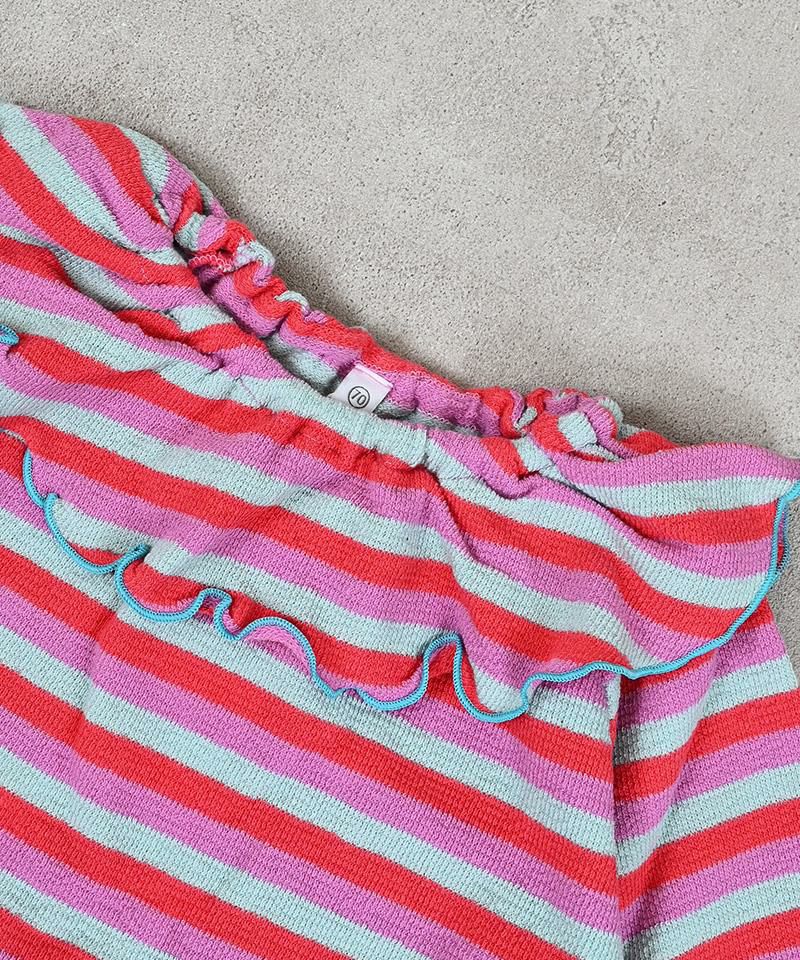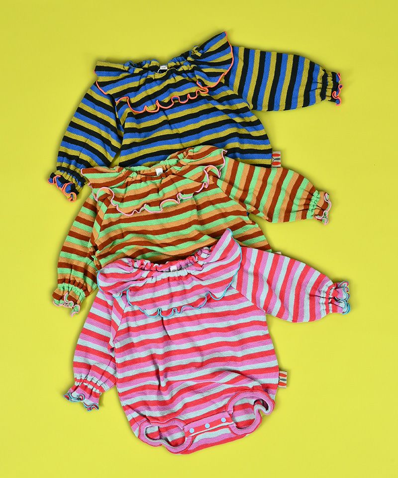パイルボーダーフリルカラーボディシャツ