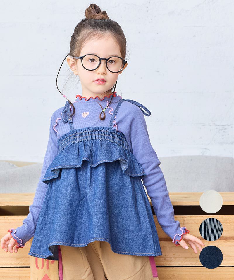 COTTON from U.S.A デニム3WAYフリルサロペット