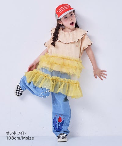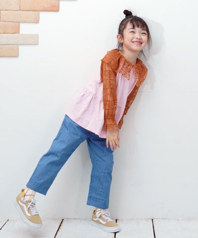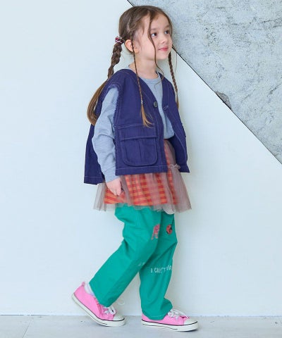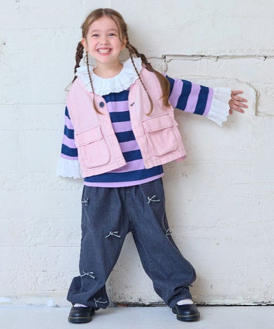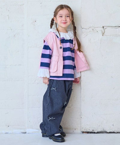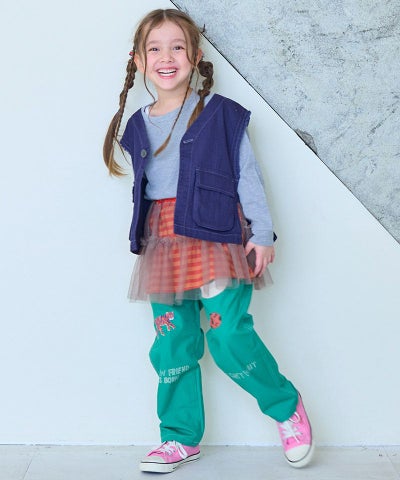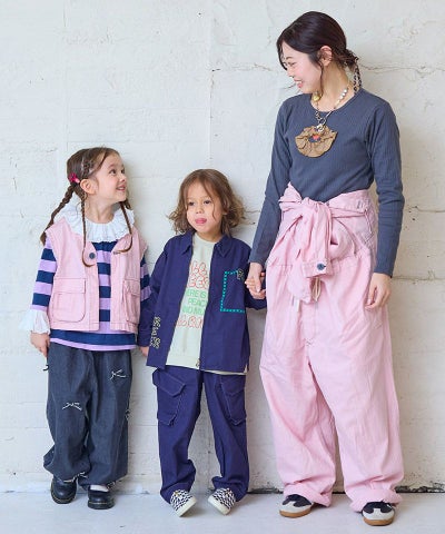 【親子お揃い】デニムオーバーサイズタックキュロットパンツ