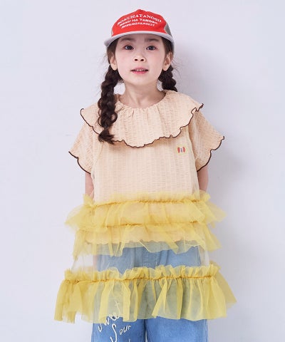 【マシンウォッシャブル】フリルカラーニットカーディガン