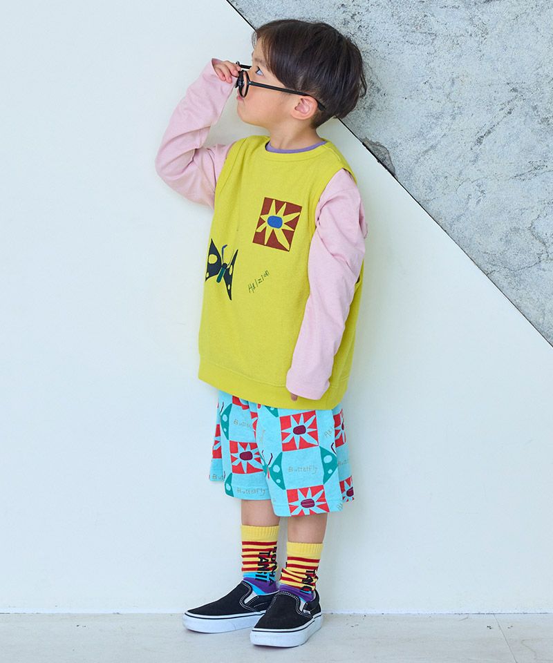 総柄ミニ裏毛ワイドタックハーフパンツ
