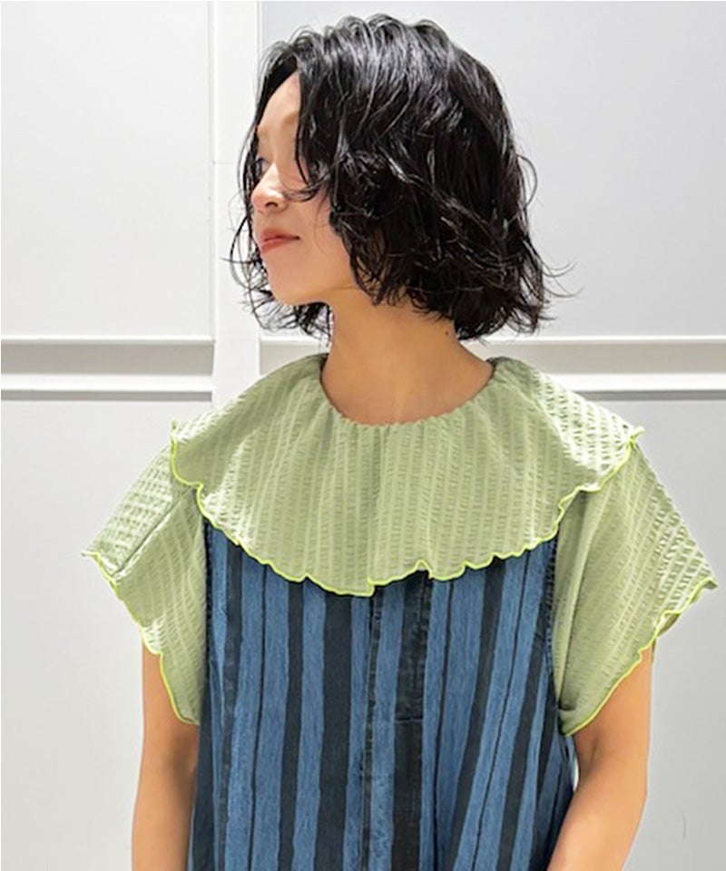 ニットサッカーフリルカラーカットソー / 大人サイズ