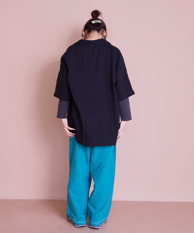 【親子お揃い】Wガーゼオープンカラーワイドシャツ/大人サイズ