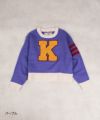 裏毛恐竜スパンコール刺繍袖フェイクレイヤード風トレーナー/販売店舗限定