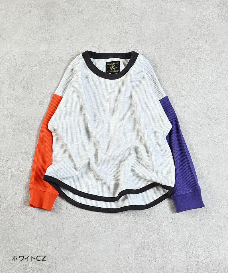 裏毛恐竜スパンコール刺繍袖フェイクレイヤード風トレーナー【販売店舗限定アイテム】