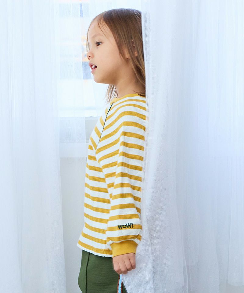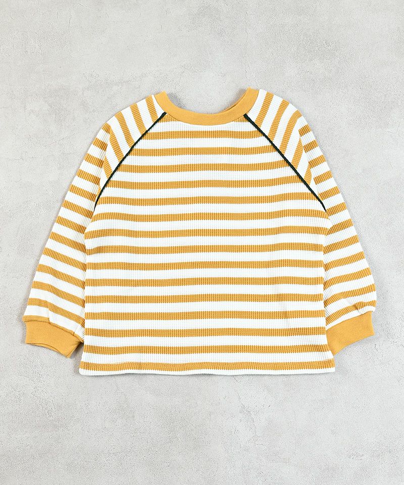 両面ワッフルボーダー袖刺繍カットソー【販売店舗限定アイテム】