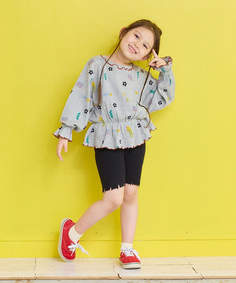 両面ワッフル襟刺繍メローカットソー【販売店舗限定アイテム】